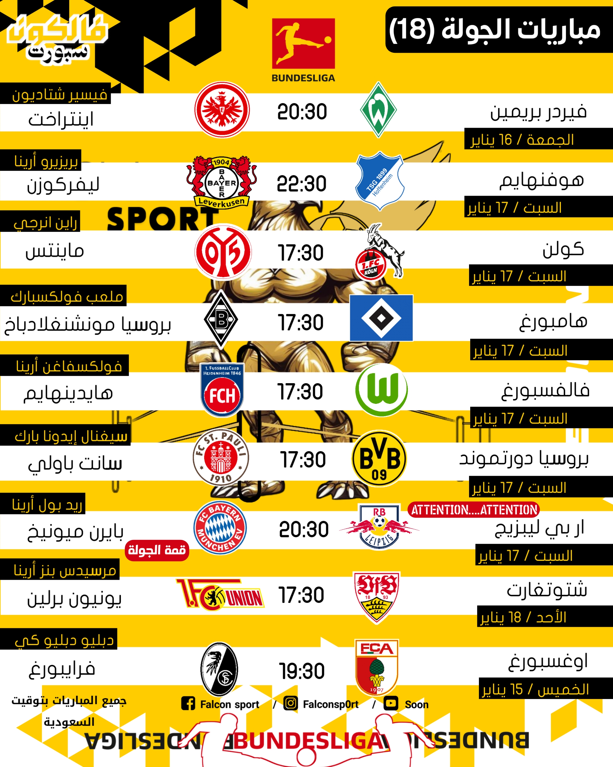 جدول مباريات الجولة ١٨ من الدوري الالماني